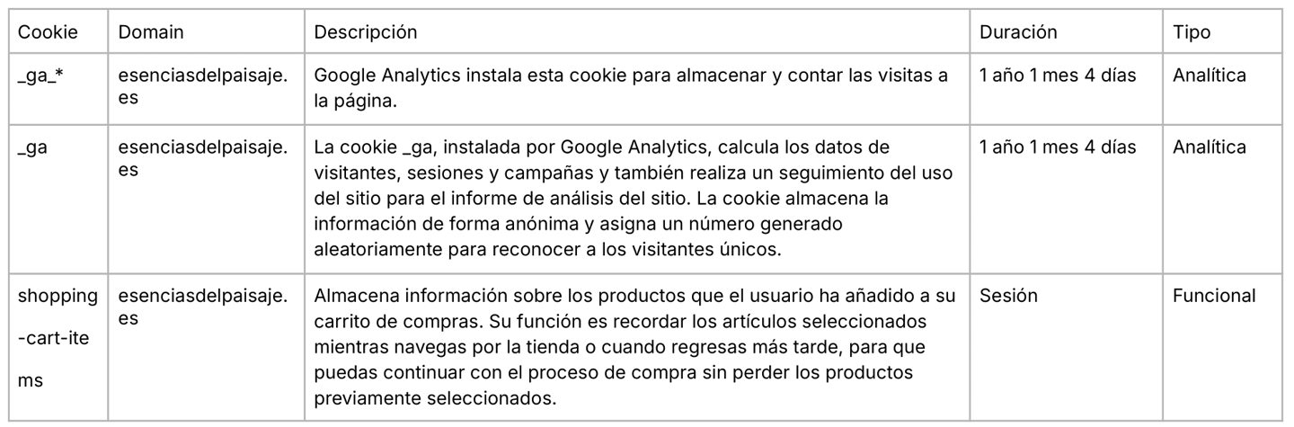 COOKIES UTILIZADAS EN ESTE SITIO WEB