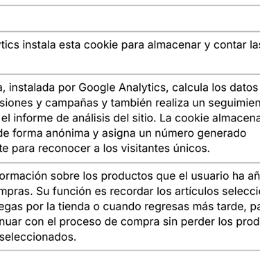 Cookies de afiliados: permiten hacer un seguimiento de las visitas procedentes de otras webs, con las que el sitio web establece un contrato de afiliación (empresas de afiliación).